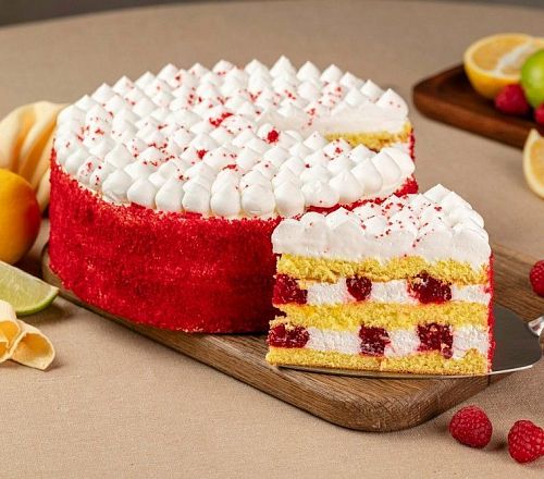 Легкие лимонные коржи, со сливочно-сырным кремом и малиновым конфитюром