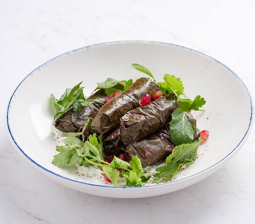 Традиционное блюдо на основе фарша из баранины, риса, зелени и специй, все заворачивается в виноградные листья и отваривается