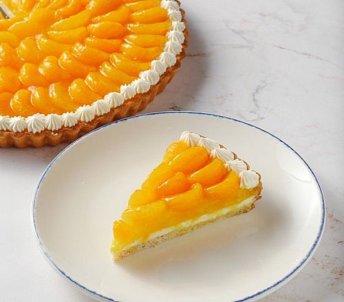 Идеальное сочетание текстур: хрустящая песочная основа с мандаринами, белым шоколадом, сливочным кремом и апельсиновым желе